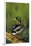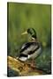 Mallard Male on Log in Wetland, Marion County, Illinois