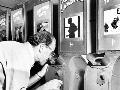 Man Looking into a Nickelodeon Film Machine Photo Print