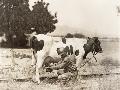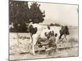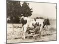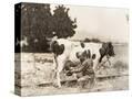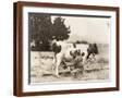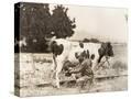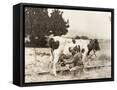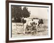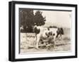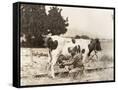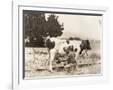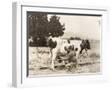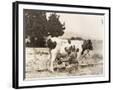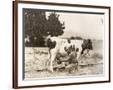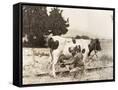 Man Milking Cow in Field Photo Print