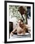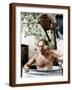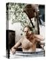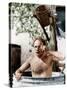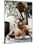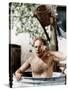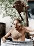 Man Sitting in a Barrel Taking a Bath and Looking Through His Monocle Photo Print
