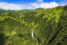 Manawaiopuna Falls (aerial) also known as Jurassic Park Falls, Hanapepe Valley, Kauai, Hawaii, USA.