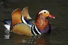 Mandarin drake showing orange 'sail' feathers, London, UK