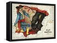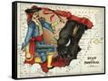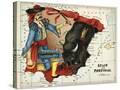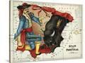 Map Of Spain and Portugal Represented As a Matador and Bull Giclee Wall Art