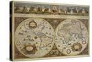 Map in Two Hemispheres with Portrait of Pope Innocent XI, 1676 Giclee Wall Art