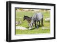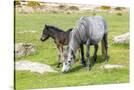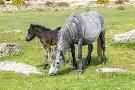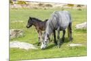 Mare and foal Dartmoor ponies, Dartmoor National Park, near Combestone Tor, Devon, United Kingdom