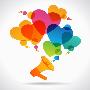 Megaphone and Hearts Icons. the Concept of Love between People .The Concept of Communication Betwee Wall Art Print