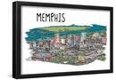 Memphis, Tennessee - Line Drawing - Lantern Press Artwork Wall Art Print