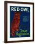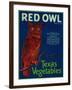 Mercedes, Texas - Red Owl Vegetable Label Wall Art Print