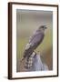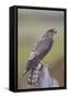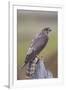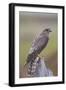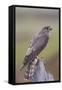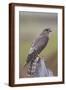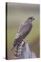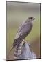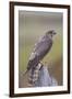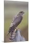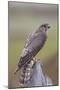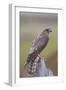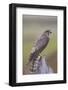 Merlin Female on Perch with Meadow Pipit Chick Prey for its Offspring. Sutherland, Scotland, June Photo Print