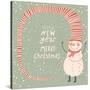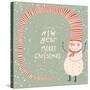 Merry Christmas and a Happy New Year Cartoon Card in Vector. Childish Background with Funny Snowman