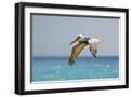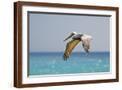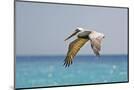 Mexico, Caribbean. Male Brown Pelican Flying over the Sea