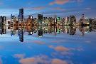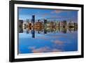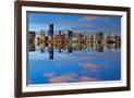 Miami Skyline Seen from Key Biscayne at Dusk with Beautiful Reflections Photo Print