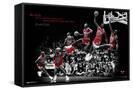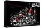 Celebrate the legacy of Michael Jordan with this iconic "Fly" poster, showcasing a sequence of the basketball legend in motion as he takes flight toward the hoop. The artwork combines dynamic action shots in vivid red and white Chicago Bulls uniforms, contrasted against a black-and-white background of the basketball court and crowd, emphasizing Jordan's unparalleled athleticism. The inspiring quote, "Once you leave the ground, you fly. Some people fly longer than others," by Jordan himself, is featured in elegant red and white text. The poster’s composition captures multiple frames of Jordan's jump, illustrating his legendary ability and determination. Printed on premium-quality paper, this posters is perfect for sports enthusiasts, basketball fans, or collectors, it makes a bold statement in home gyms, man caves, or offices. Show your admiration for one of the greatest athletes in history with this Michael Jordan "Fly" poster, a timeless tribute to his legacy & impact on the sport.