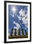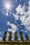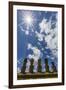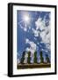 Moai with Scoria Red Topknots at the Restored Ceremonial Site of Ahu Nau Nau