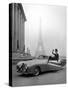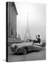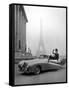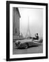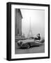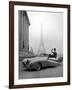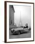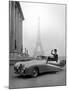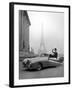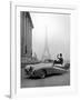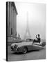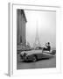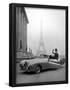 Model Wearing Jacques Fath Ensemble Beside 1947 Model Delahaye Automobile Photo Print
