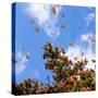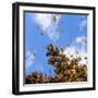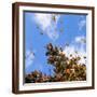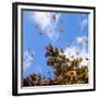 Monarch Butterflies on Tree Branch in Blue Sky Background in Michoacan, Mexico Photo Print