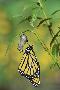 Monarch butterfly emerging from chrysalis on Tropical milkweed, Hill Country, Texas, USA