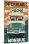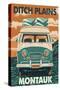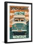 Montauk , New York - Ditch Plains - Letterpress - Camper Van - Lantern Press Artwork