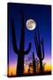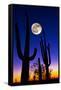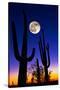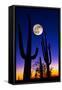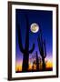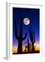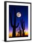 Moon over Saguaro Cactus (Carnegiea Gigantea), Tucson, Pima County, Arizona, USA