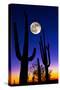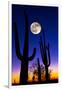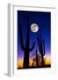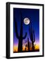 Moon over Saguaro Cactus (Carnegiea Gigantea), Tucson, Pima County, Arizona, USA