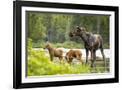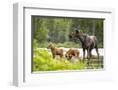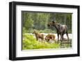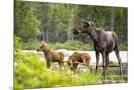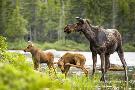 Moose female with twin calves, Baxter State Park, Maine, USA