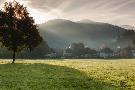 Morning fog over the Schauinsland Strasse, Freiburg Im Breisgau, Black Forest, Baden-Wurttemberg...
