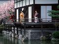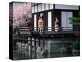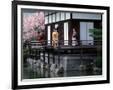 Mother and Daughter at Shobi-Kan Teahouse, Garden at Heian Shrine During Cherry Blossom Festival