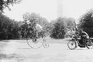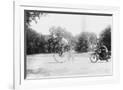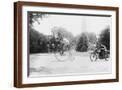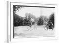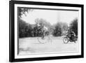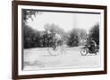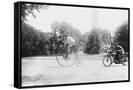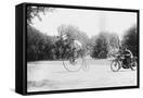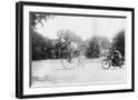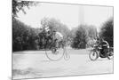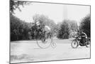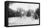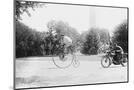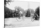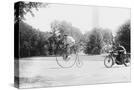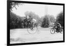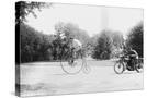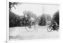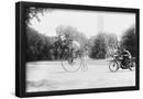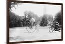 Motorcycle Cop Chases a Penny Farthing Velocipede Down a DC Street with Washington Monument in Back Wall Art Print