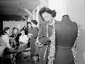 Mrs. Ryie Yoshizawa teaching a dressmaking class to women students at Manzanar, 1943