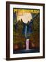 Multnomah Falls, Oregon and Full Moon Wall Art Print