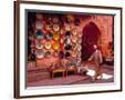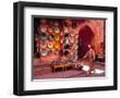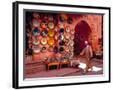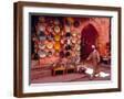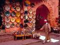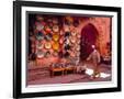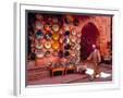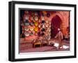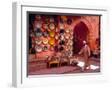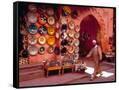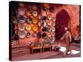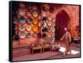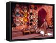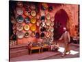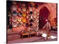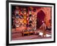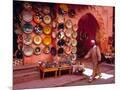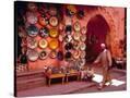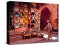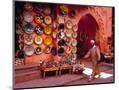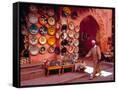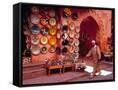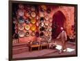 Muslim Man Walks by Wall of Moroccan Pottery, Marrakech, Morocco