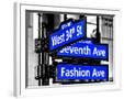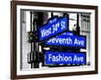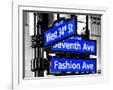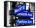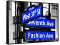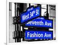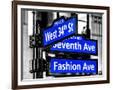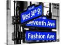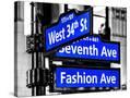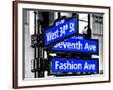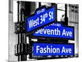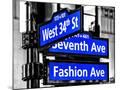NYC Street Signs in Manhattan by Night - 34th Street, Seventh Avenue and Fashion Avenue Signs