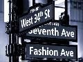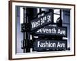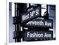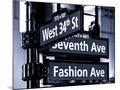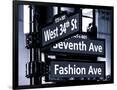 NYC Street Signs in Manhattan by Night - 34th Street, Seventh Avenue and Fashion Avenue Signs
