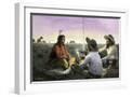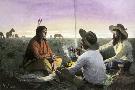 Native American Joining Cowboys at their Campfire, Late 1800s