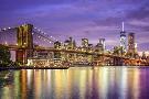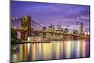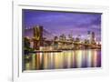 New York, New York, USA City Skyline with the Brooklyn Bridge and Manhattan Financial District Over
