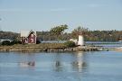 New York, Thousand Islands. Home with lighthouse on tiny island. Photo Print