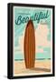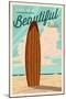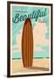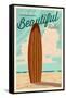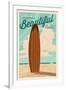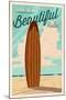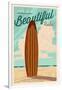 Newport Beach, California - Surf Board Letterpress - Life is a Beautiful Ride Wall Art Print