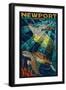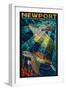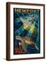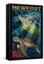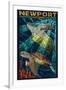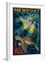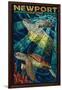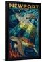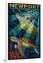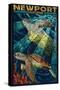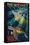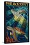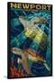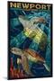 Newport, California - Sea Turtle Mosaic Wall Art Print