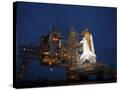 Night View of Space Shuttle Atlantis on the Launch Pad at Kennedy Space Center, Florida Photo Print