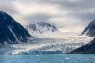 Norway, Svalbard. Monacobreen Glacier, a tidewater glacier, finds the ocean in northern Svalbard