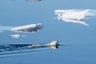 Norway, Svalbard. Polar bear swimming between ice floes in Arctic Ocean.