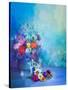 Oil Painting Flowers in Vase. Hand Paint Still Life Bouquet of White,Yellow and Orange Sunflower, G