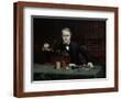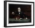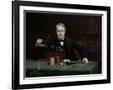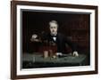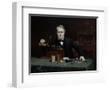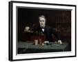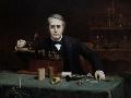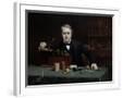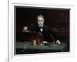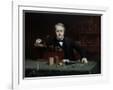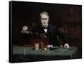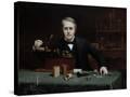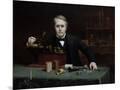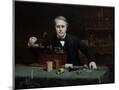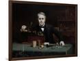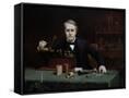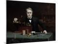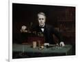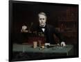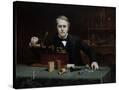 Oil painting of inventor Thomas Edison in his laboratory. Wall Art Print