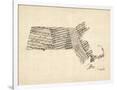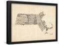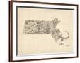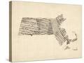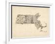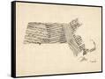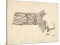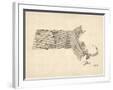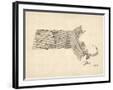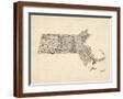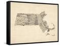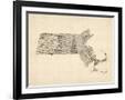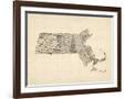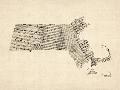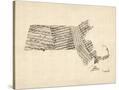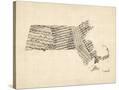 Old Sheet Music Map of Massachusetts Wall Art Print