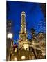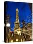 Old Water Tower with holiday lights, Chicago, Illinois, USA