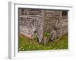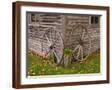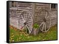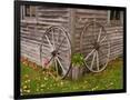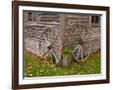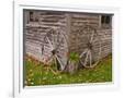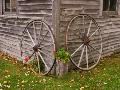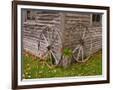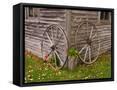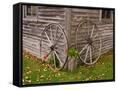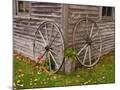 Old Wooden Barn with Wagon Wheels in Rural New England, Maine, USA