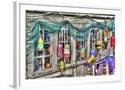 Old building, Netarts, Oregon. Decorated with colorful fishing gear. Photo Print