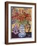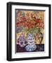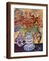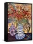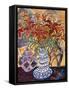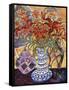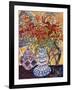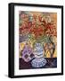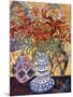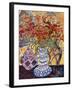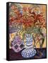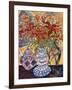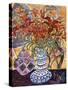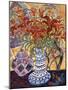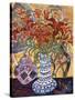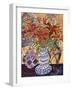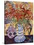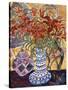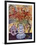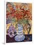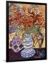 Orange Flowers in Blue and White Vase on a Table Next to a Jug Giclee Wall Art