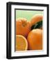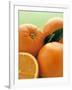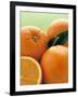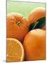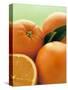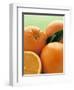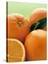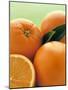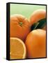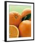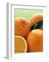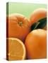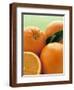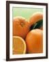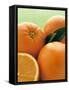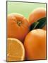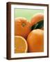 Oranges with Leaves Close Up