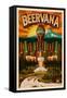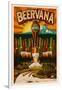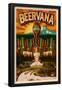 Oregon - Beervana Tap and Valley Wall Art Print